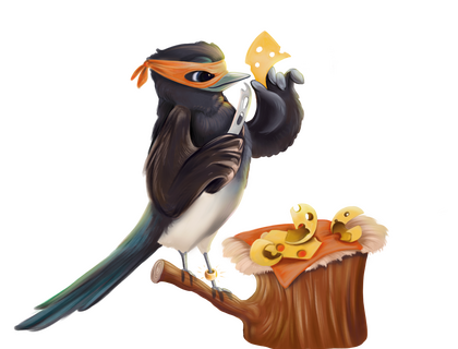 Hallo ich bin Elvira, die Elster, und im tiefen dunklen Wald bin ich die einzig wahre Expertin für Schmuck. Alles, was glänzt und glitzert, muss ich einfach haben. Du erkennst mich sofort an dem Ring an meinem Fuß. Dass sich diese Murmeldick-Bande in meinem Revier breit macht, gefällt mir nicht.